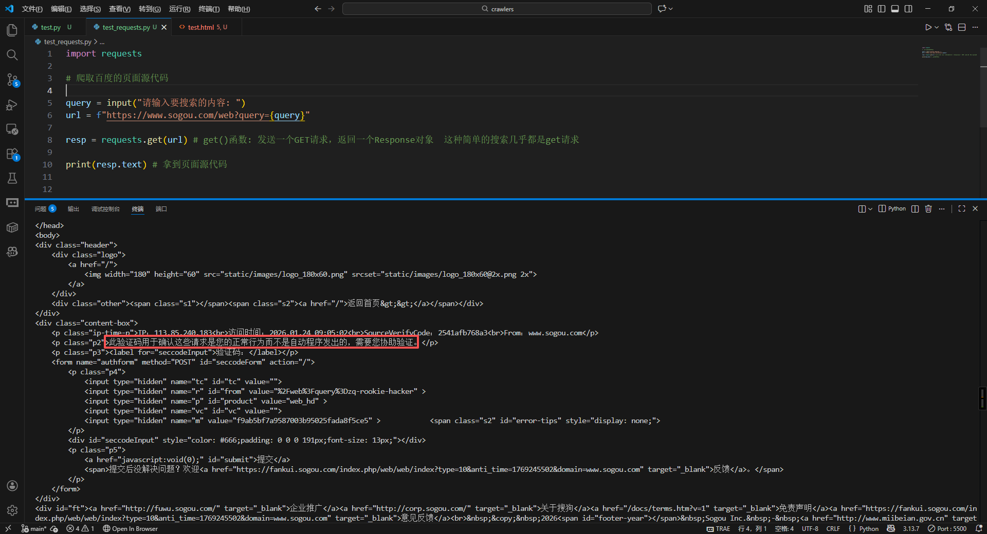 with open("./test.html", "w", encoding="utf-8") as f: # with: 上下文管理器 open()函数: 打开一个文件,"w"表示写入模式,encoding指定编码格式 as f: 表示将文件对象赋值给f f.write(response.read().decode("utf-8"))