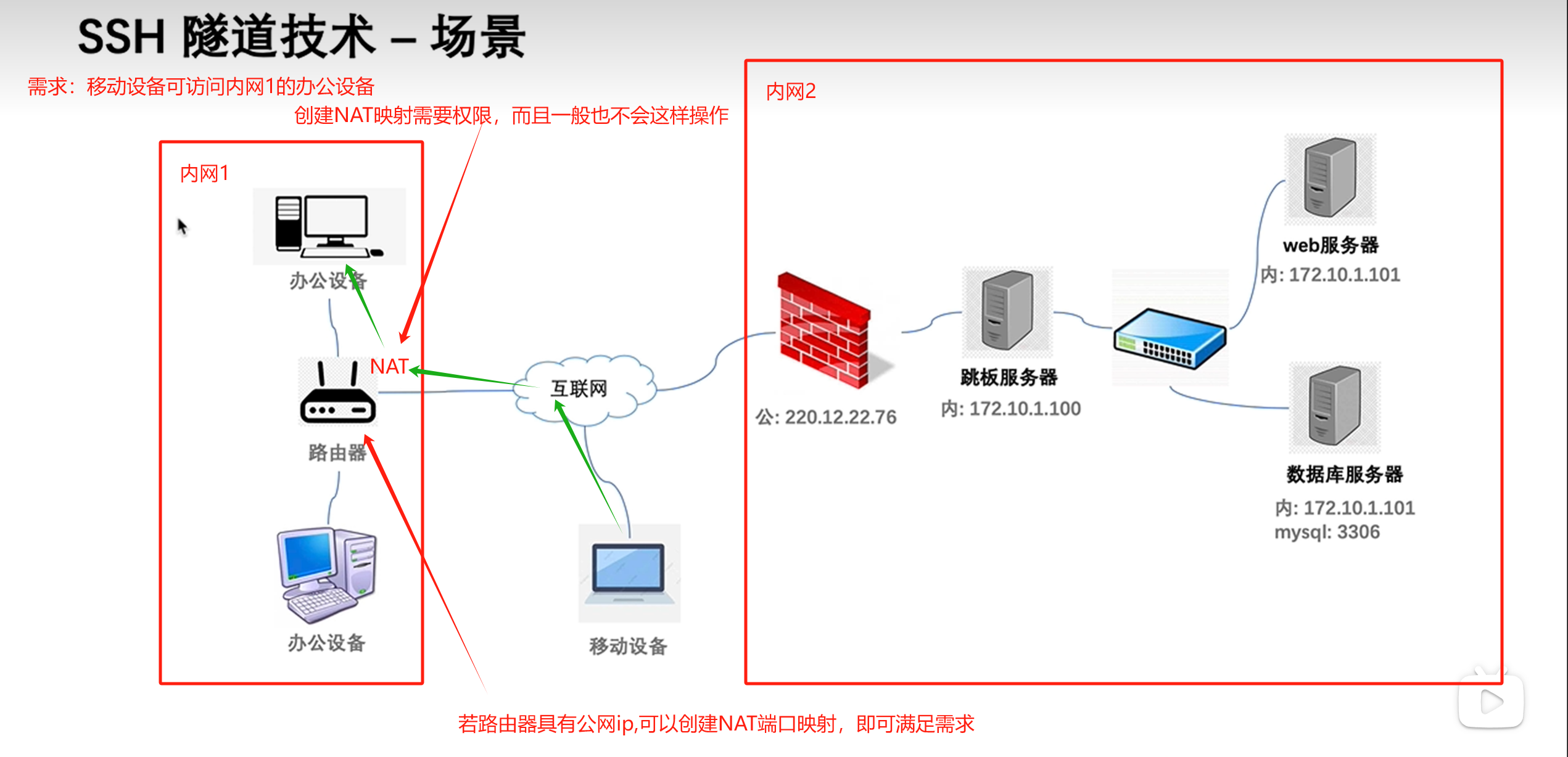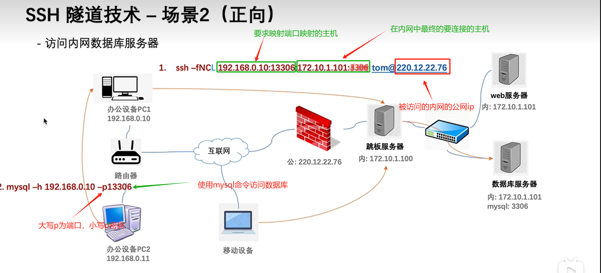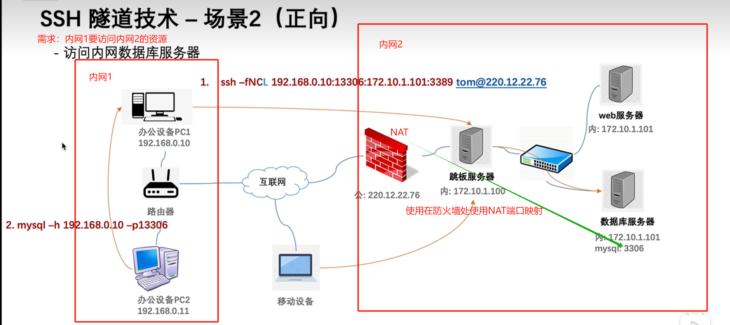 比如:你想从家里访问公司内网的数据库,但数据库只能在公司内网访问,这时候 SSH 隧道就能帮你 “穿墙” 访问。
